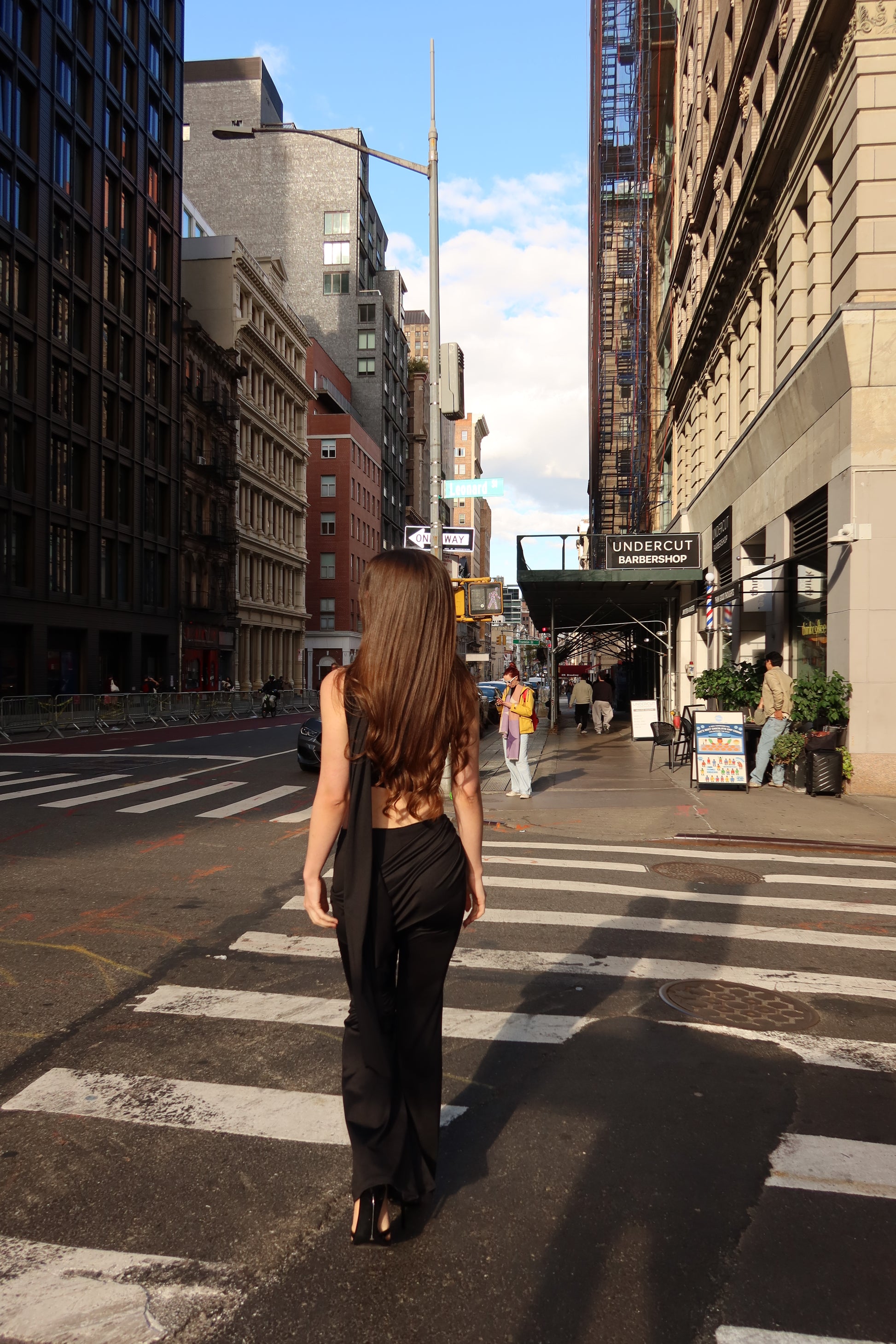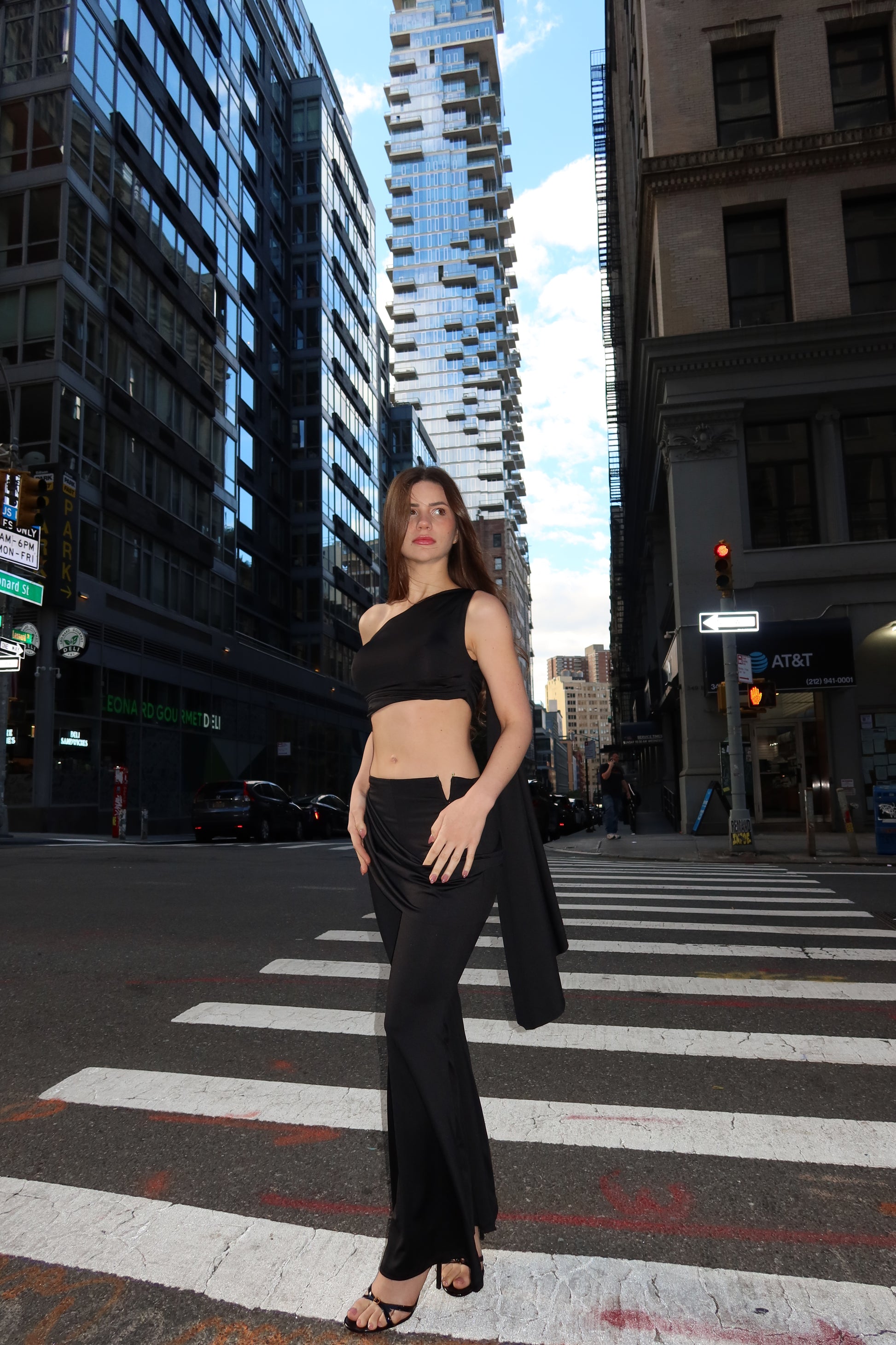 Set en tela licrada con un top medio beso drapeado y capa que llega hasta la pierna. Pantalón con detalle de hebilla en V en color dorado. Su horma es espectacular!
