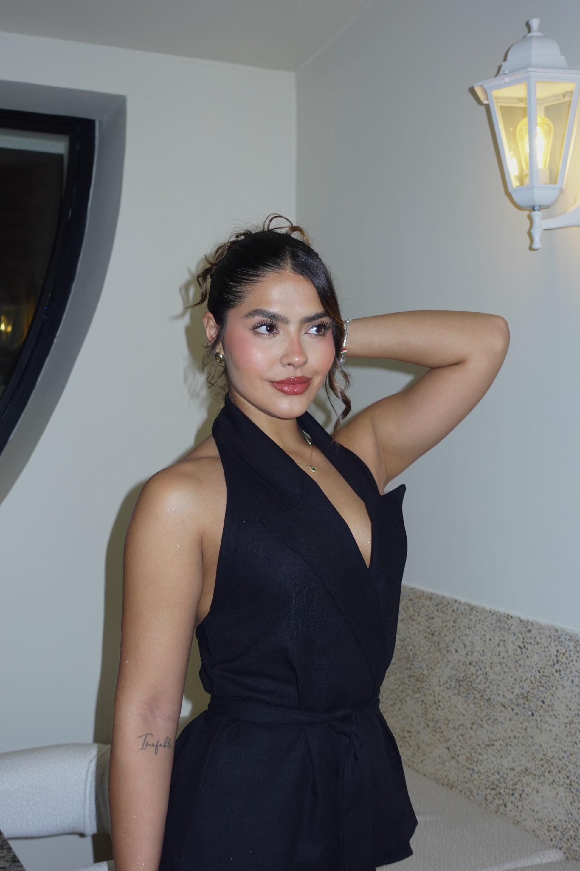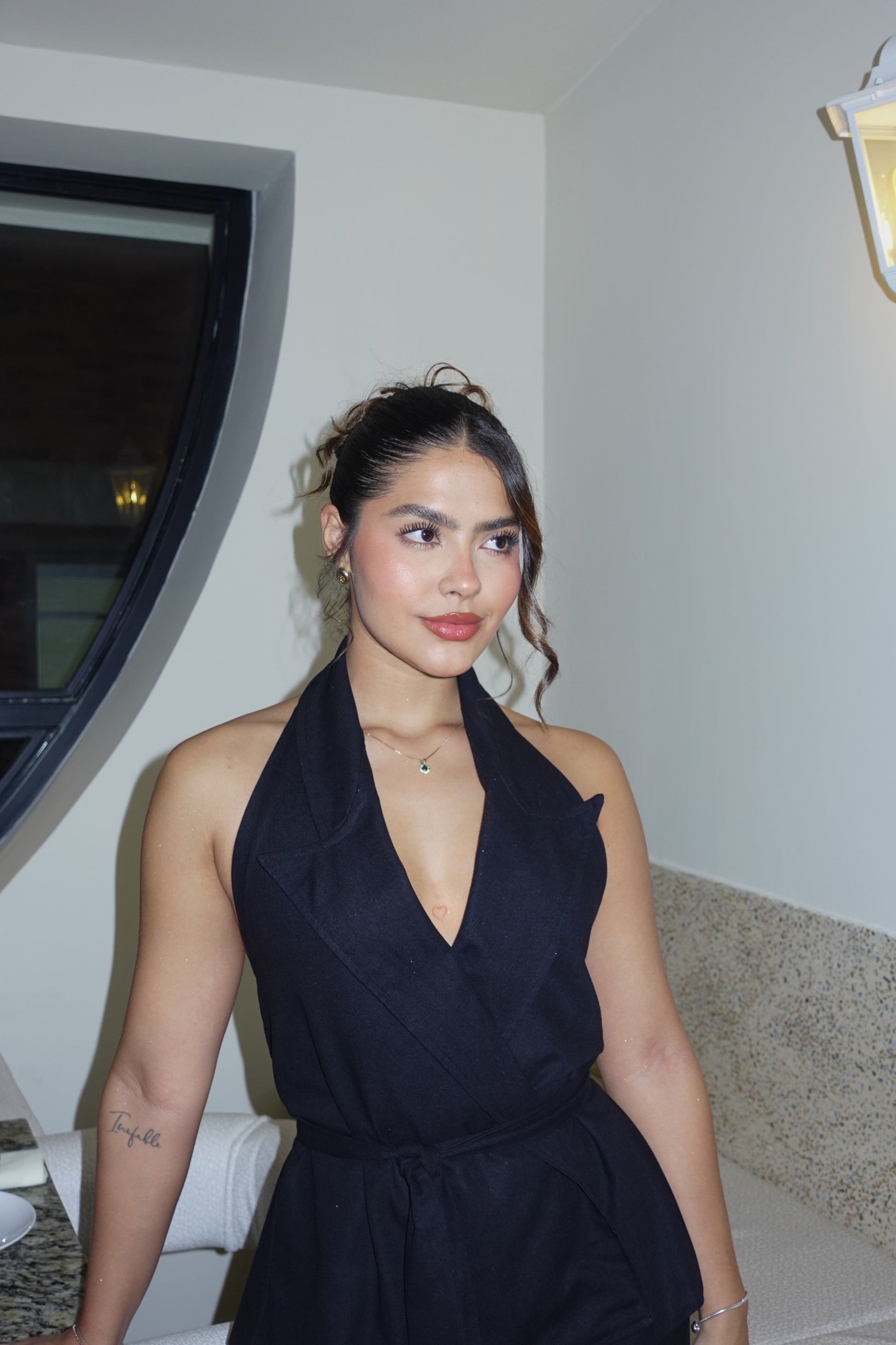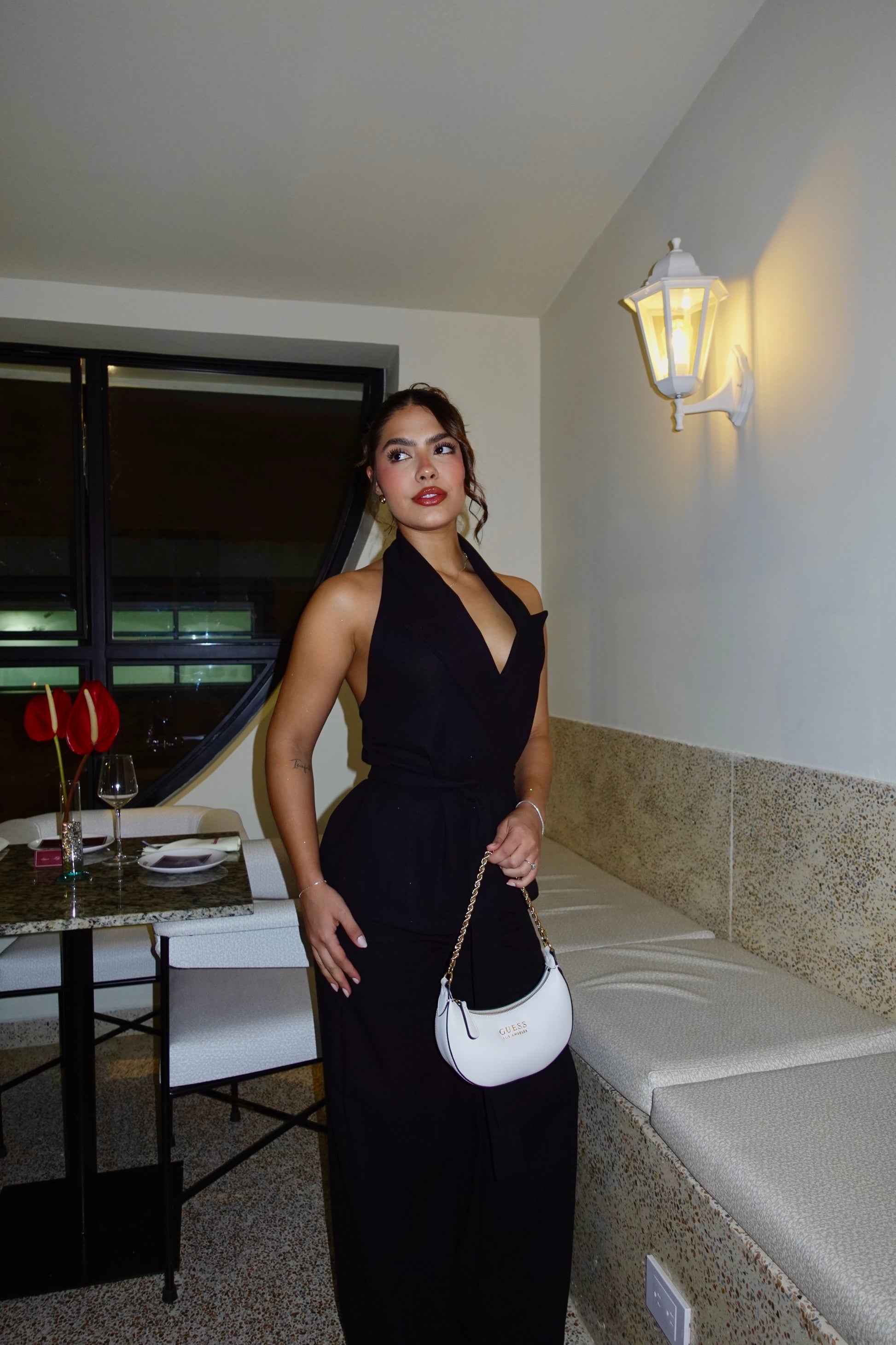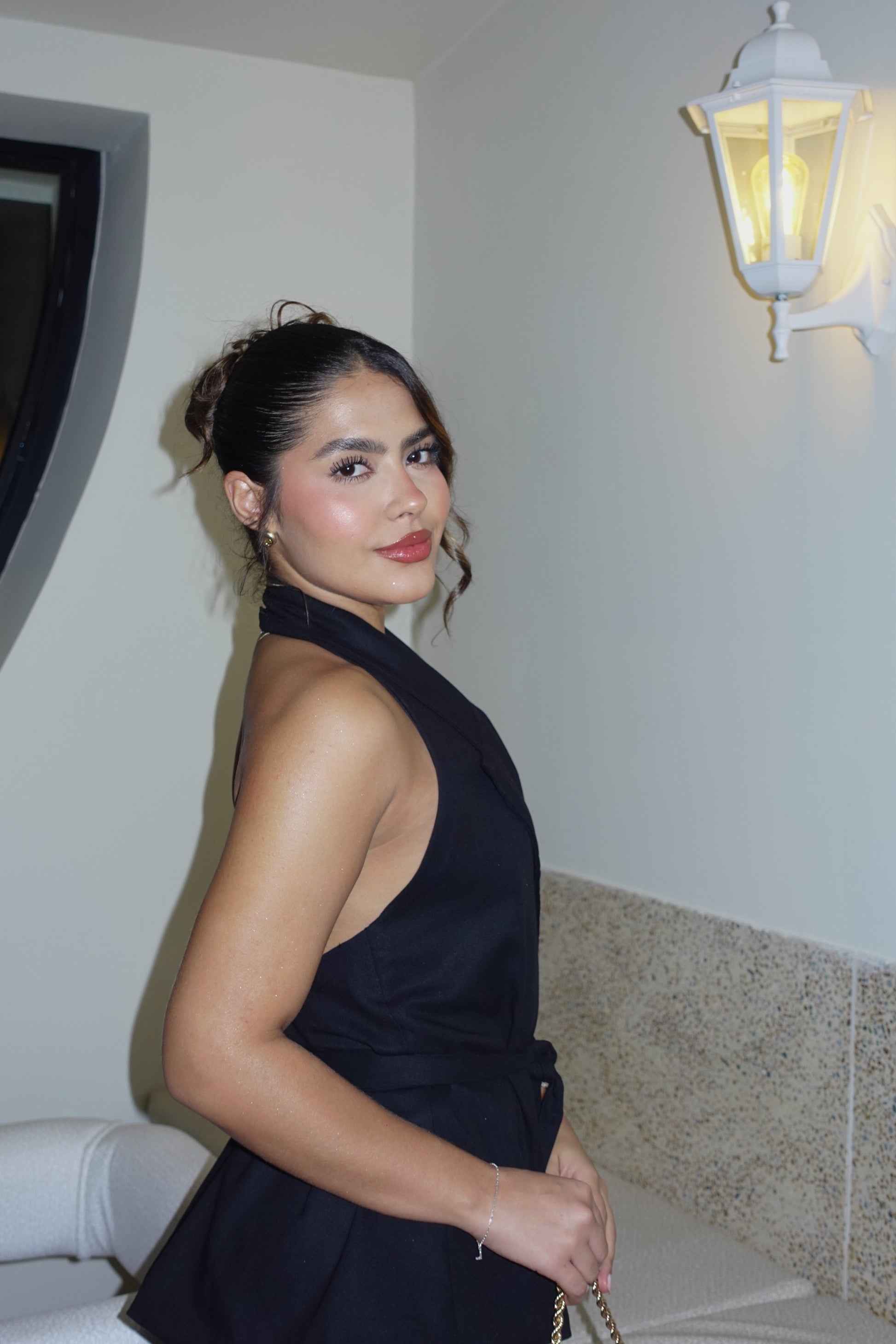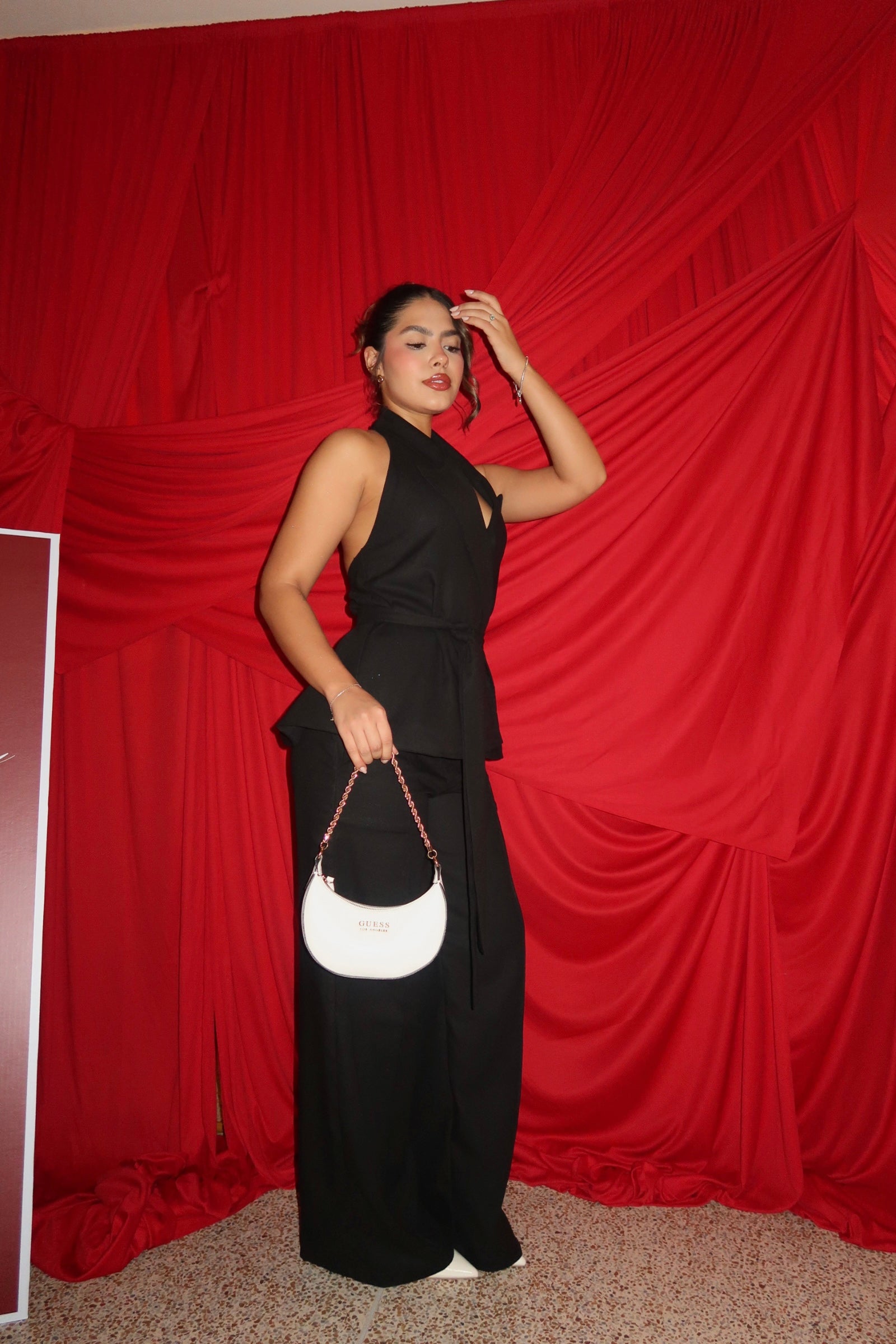 Set de pantalón y chaleco doble tela elaborado en lino Olán, la tira es removible. Este es un set elegante, sofisticado pero muy cómodo que puede ser utilizado de día o de noche.