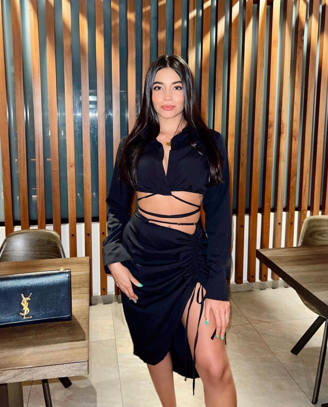 Falda midi con cintura ajustable y abertura, viene con un top tipo camisera corta y tiras ajustables.